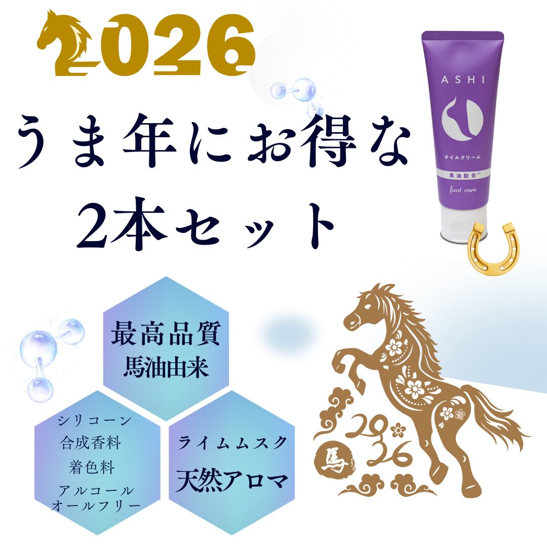 【うま年お得2本セット】ASHIオイルクリーム(馬油由来)2本+爪シャイナー2枚お試し同梱